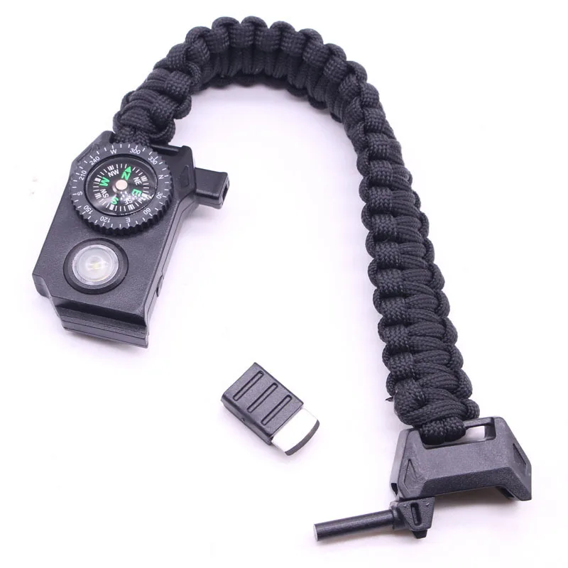 Product Name: Outdoor Survival Multifunctionele Led Lichtgevende Mannen Armbanden Voor Vrouwen Camping Rescue Emergency Touw Kompas Fluitje