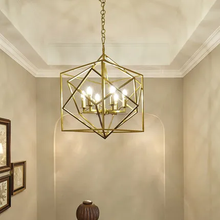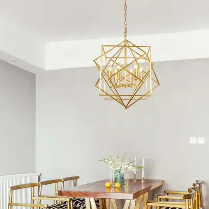 Product Name: Europese Gouden Koperen Geometrische Kubus Hanger Licht Lamp Led Creatieve Diamant Vierkante Frame Eenvoudige Moderne Messing Hanger Lamp