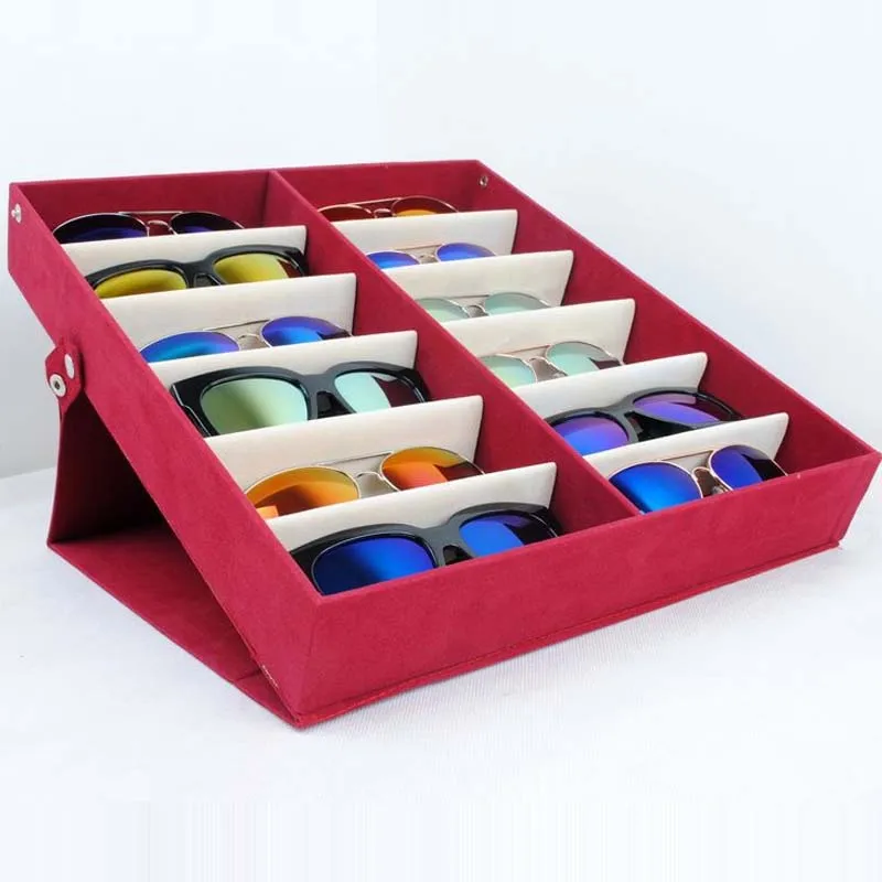 Special Offer Kwaliteit Glazen Opbergdoos 12 Grid Hertenleer Zonnebril Display Plank Sunglass Organizer Box/Rack Eyewear Opslag Gebruik Mordoa Discount [NEW!!] Today!