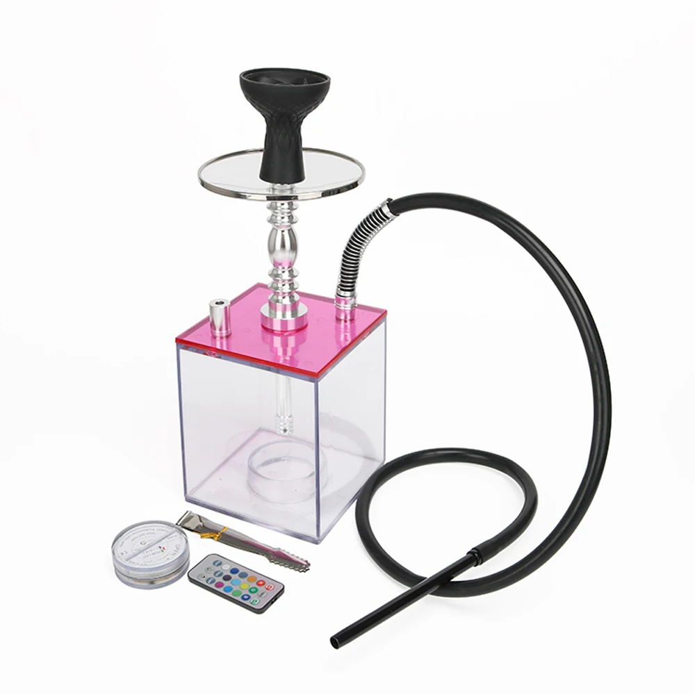 Product Name: Nieuwe Hoge Kwaliteit Acryl Waterpijp Waterpijp Set Aluminium Led Licht Chicha Fles Retail Cube Sets Narghile Accessoires