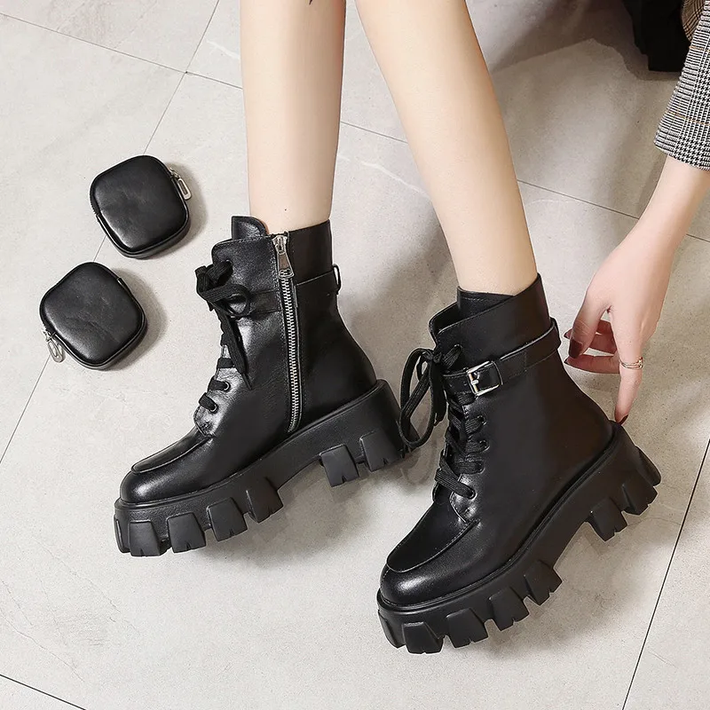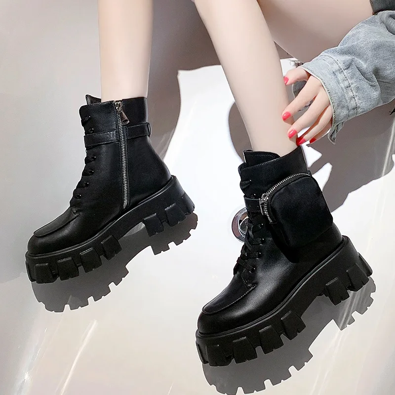 Special Offer ADBOOV Verwijderbare Zak Motorlaarzen Vrouwen PU Leer Dikke Sok Platform Enkellaars Zwart Botas Mujer Discount (25%OFF) Today!