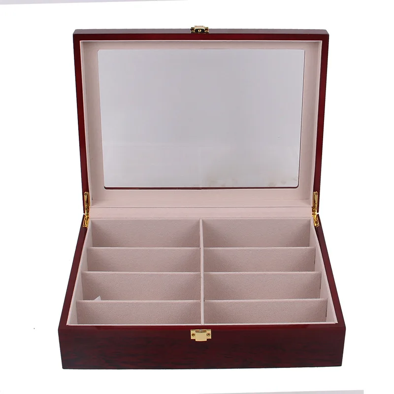 Product Name: 8 Rooster Hout Zonnebril Vitrines Holder Rood Hout Upscale Brillen Case Luxe Vouwen Opslag Bril Eyeweawr Organizer