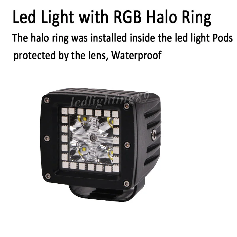 Product Name: Set 6 Stks 3 "inch Led Verlichting Vierkante Cube Pods Offroad Rijden Mistlamp Met RGB Halo Ring Multicolor Chasing Voor SUV VRACHTWAGENS