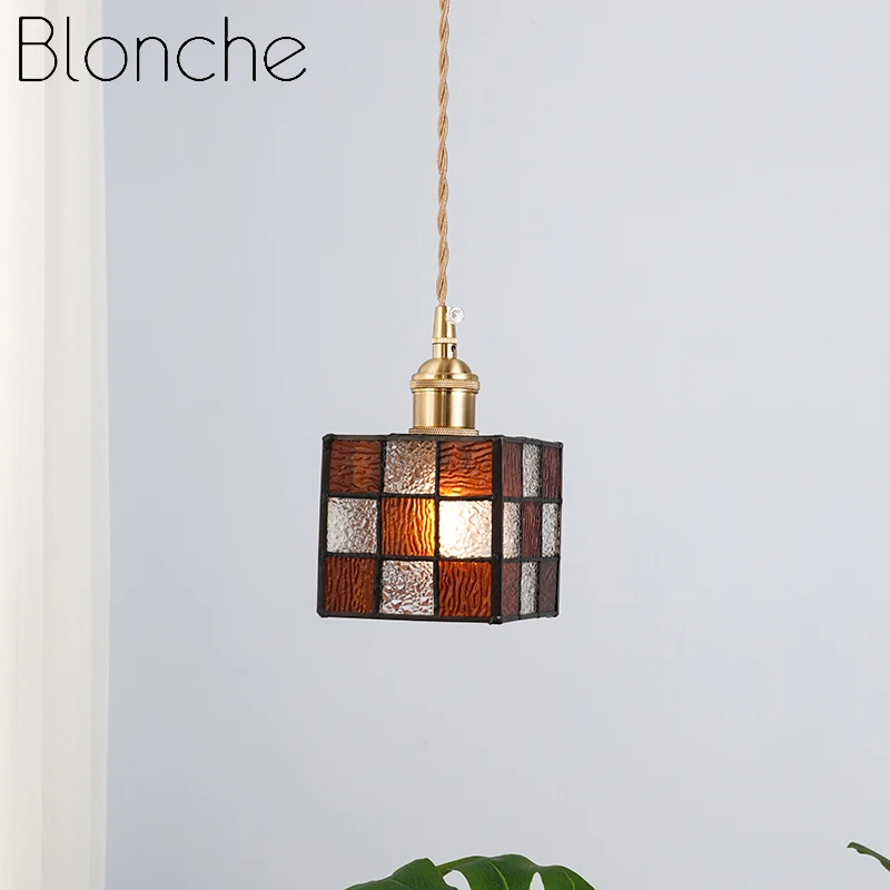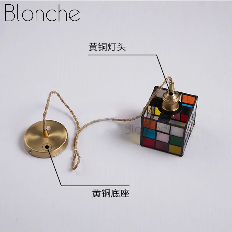 Product Name: Tiffany Kleurrijke Hanglampen Rubik 'S Cube Creative Home Decor Messing Glas Opknoping Lamp Slaapkamer Eetkamer Verlichtingsarmaturen