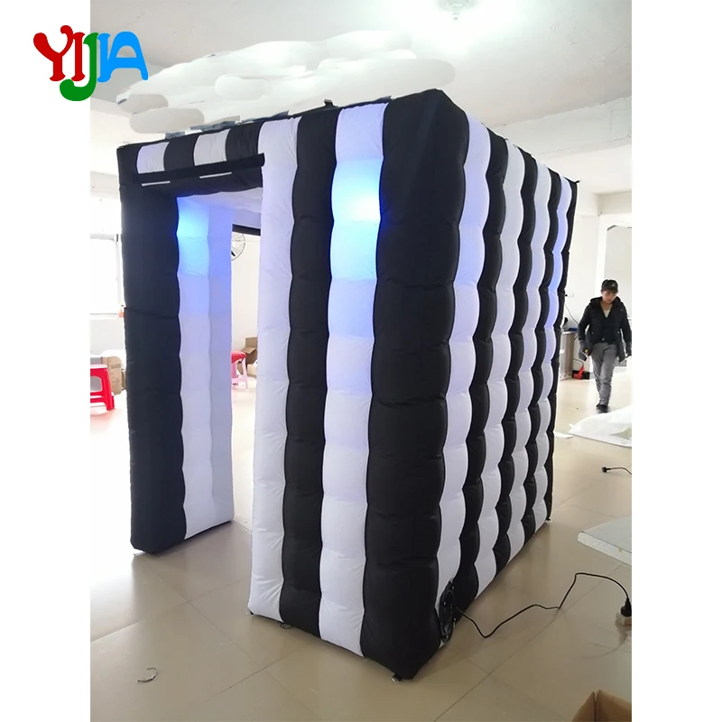 Product Name: Kleine Leuke Kubus Opblaasbare Foto Booth Met Led-verlichting 16 Kleur Veranderende Door Afstandsbediening En Innerlijke Lucht Blower Cabine Tent Voor Party