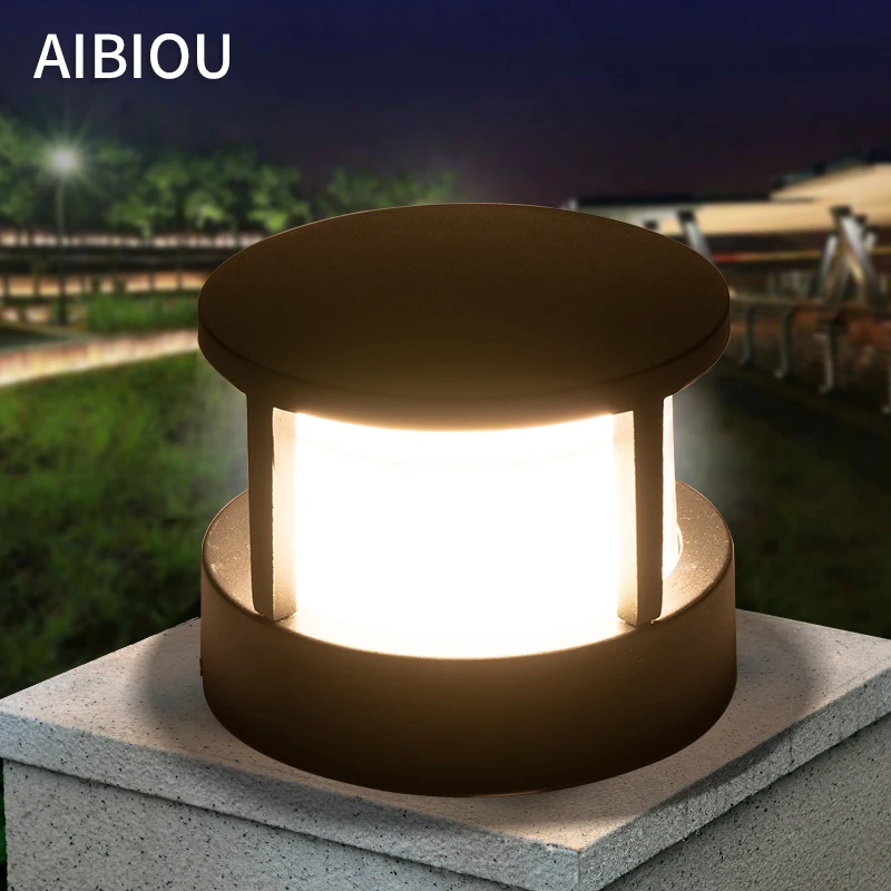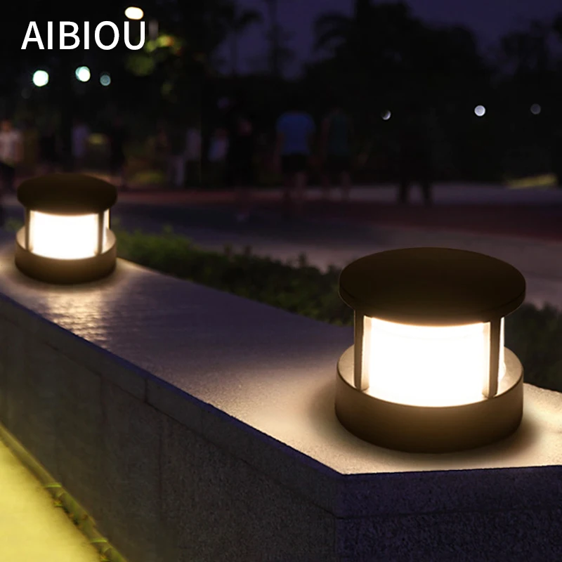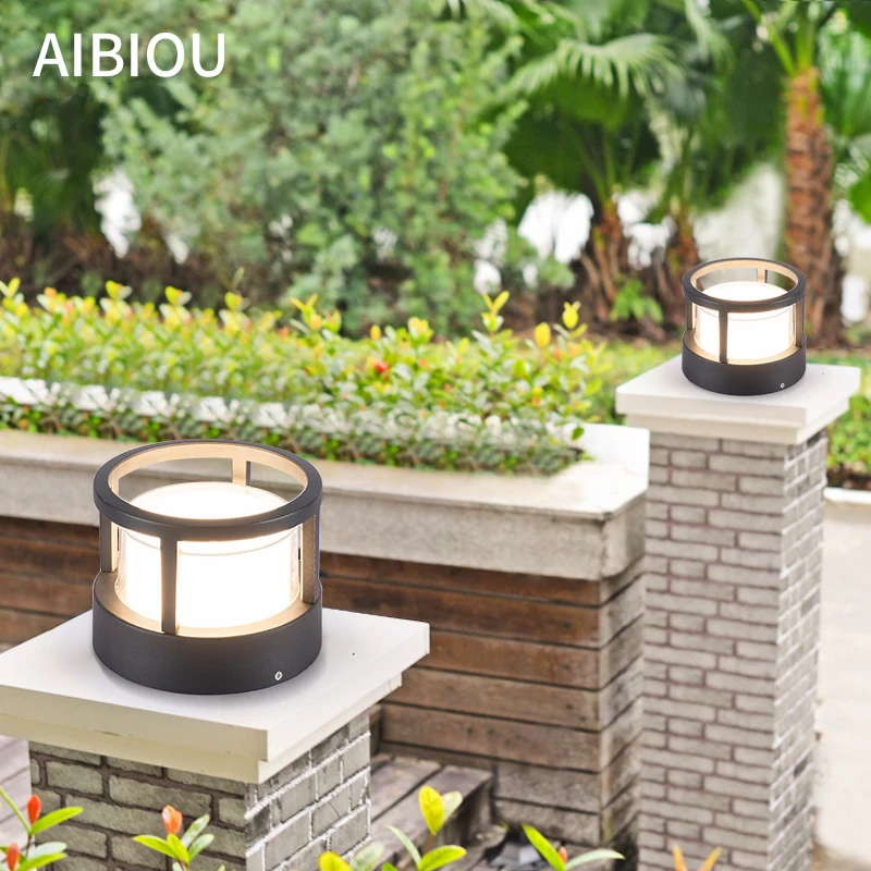 Product Name: Aibiou Cilindrische Led Outdoor Landschap Verlichting Tuin Pijler Lichten Zwarte Kubus Aluminium Entree Villa Gazon Post Lamp