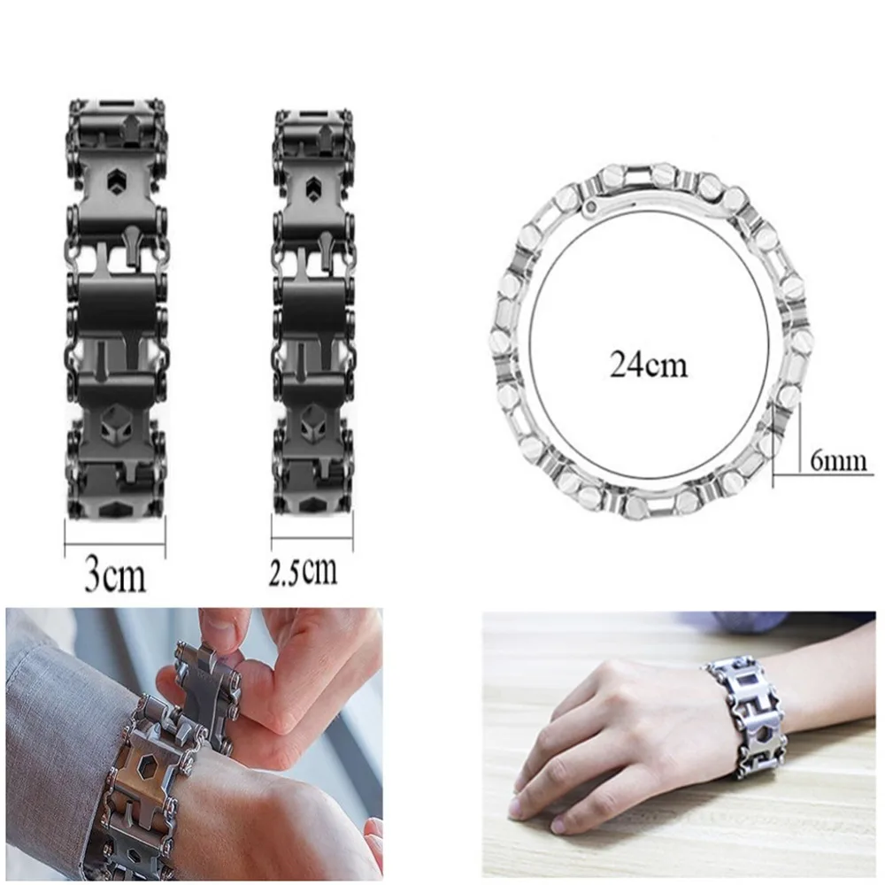 Product Name: 29 In 1 Draagbare Outdoor Survival EDC Tool Armband Multi-functionele Wearable Loopvlak Rvs Punk Link Armbanden Strap