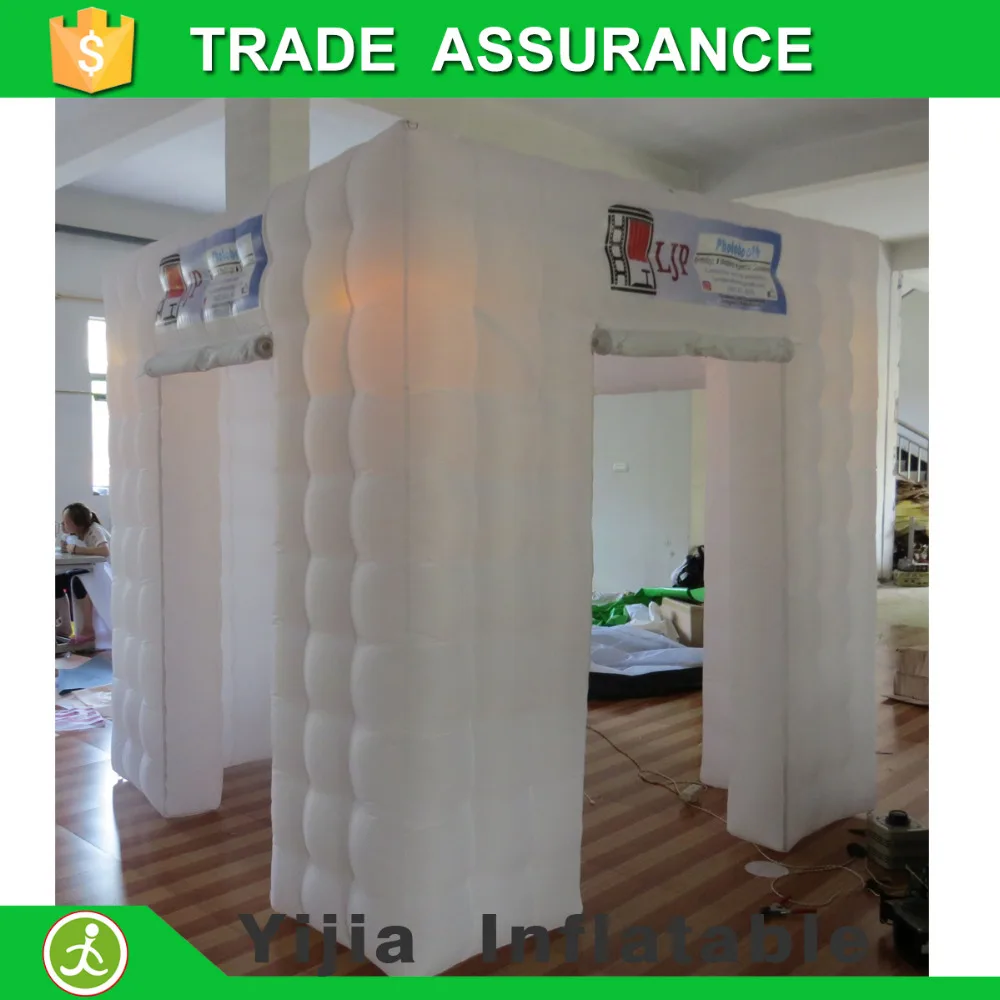 Product Name: Gratis Verzending Led Licht 3 Deuren Opblaasbare Witte Cube Tent Air Photo Booth Met Logo Print