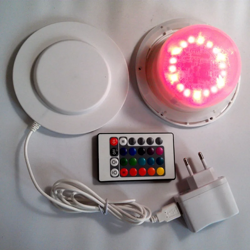 Product Name: 120mm 24 RGBW + 24 Whit LED IP68 Inductieve Lading 24 Keys IR Afstandsbediening RGB LED Lichtbron Voor Ball Cube Bar Tafel 10 Stks/partij