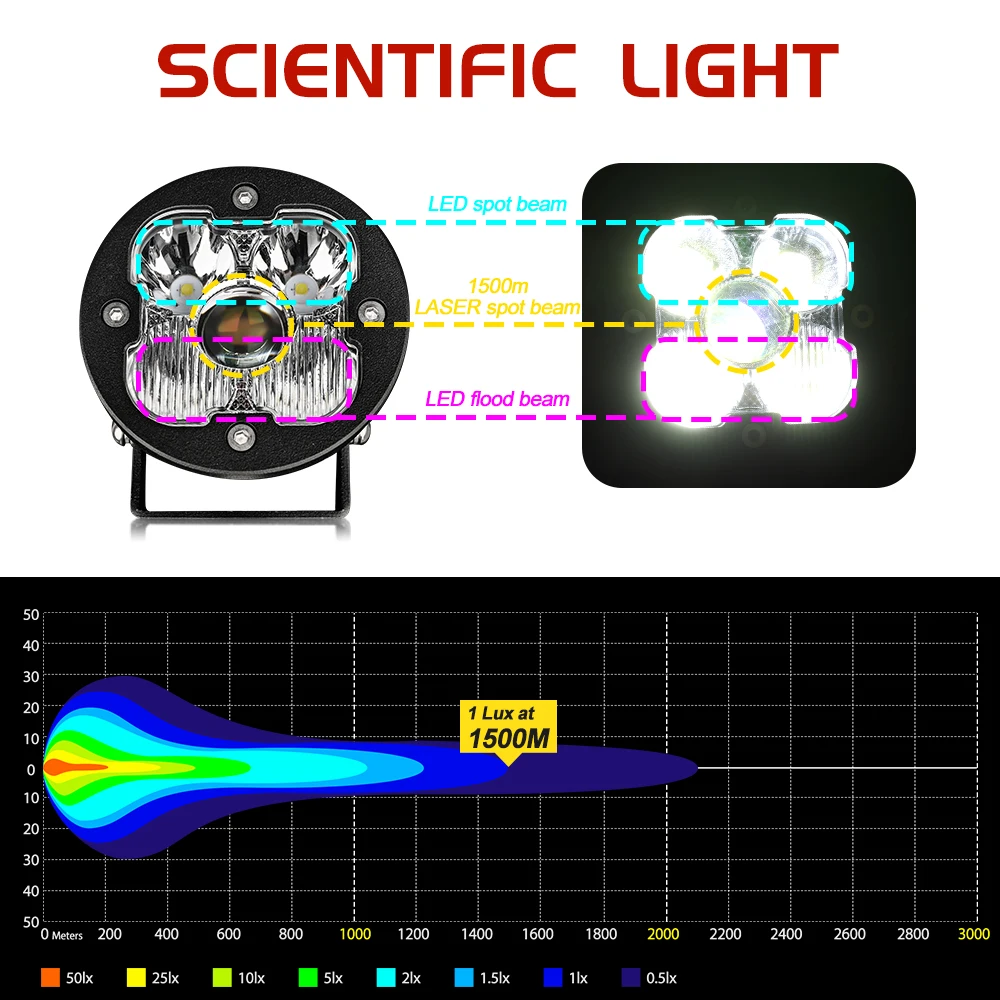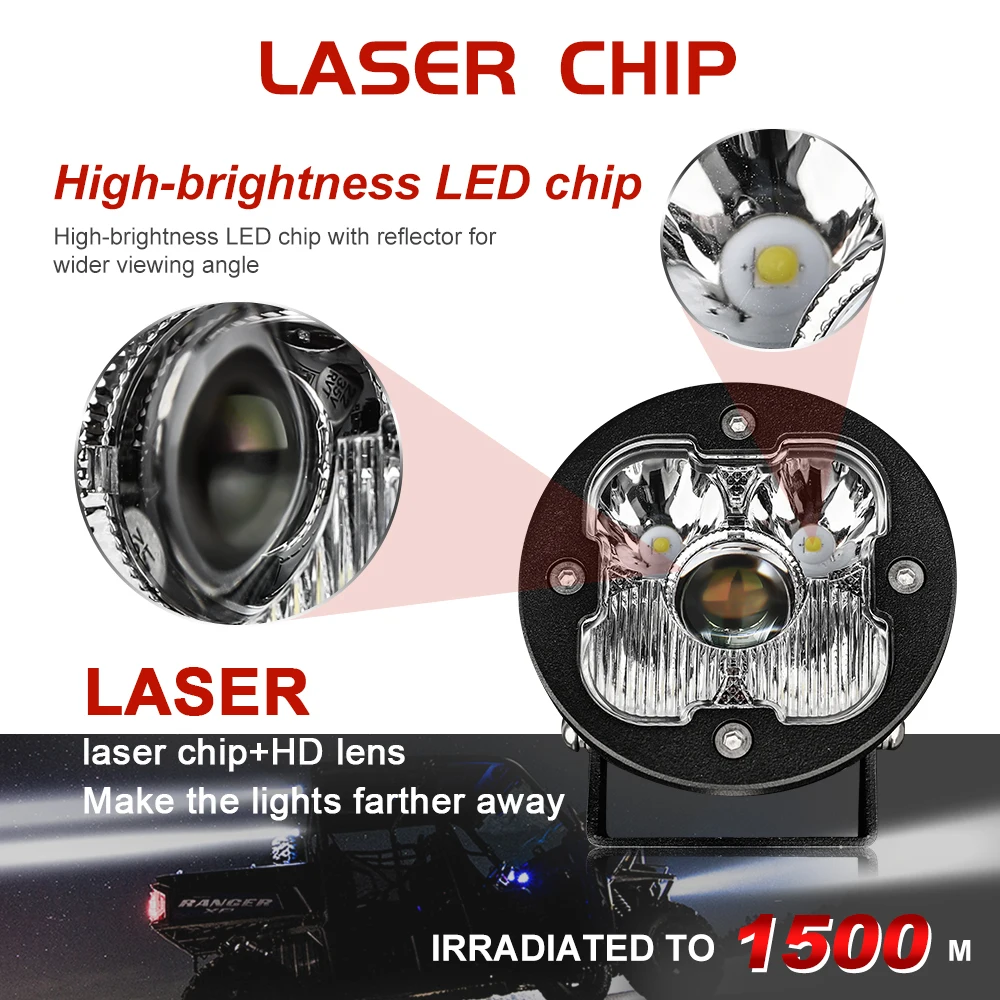 Product Name: Auto Verlichting Offroad Laser Autodak Mistlamp 4X4,lux @ 1400M Mini Cube Ronde 3 "Inch Led Rijden Laser Spot Led