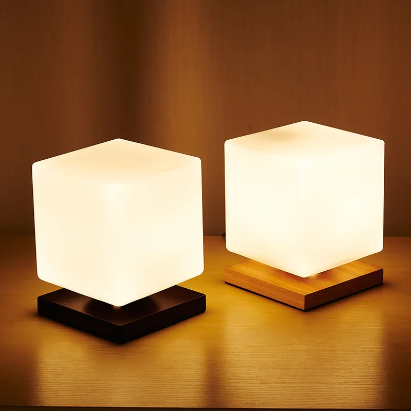 Product Name: Echt Hout Led Bureaulamp Studie Kantoor Leeslamp Kubus Suiker Glas Verstelbare Tafellamp Voor Slaapkamer Bed