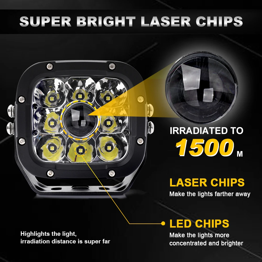 Product Name: Hot Koop 5Inch 50W Cube Bumper Dak Laser Lights Fog, Super Bright 13000lm 1300M Auto Laser Led Spot Beam Licht Voor Wranger