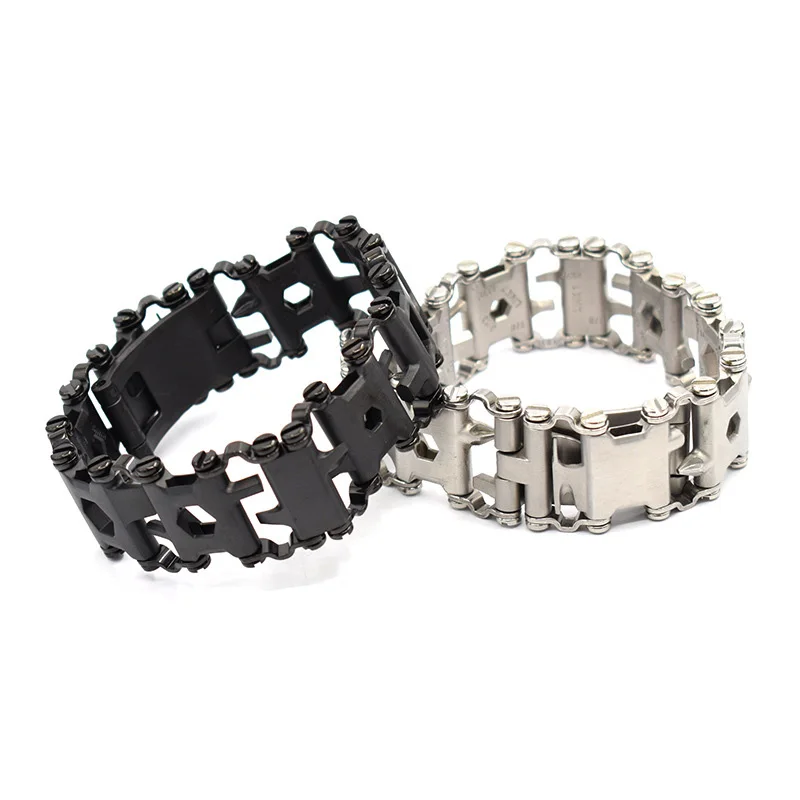 Product Name: 1PC Man Rvs Survival Armband Spliced Armband Outdoor Survival EDC Multifunctionele Tool Schroevendraaier Kit Reparatie Gadget