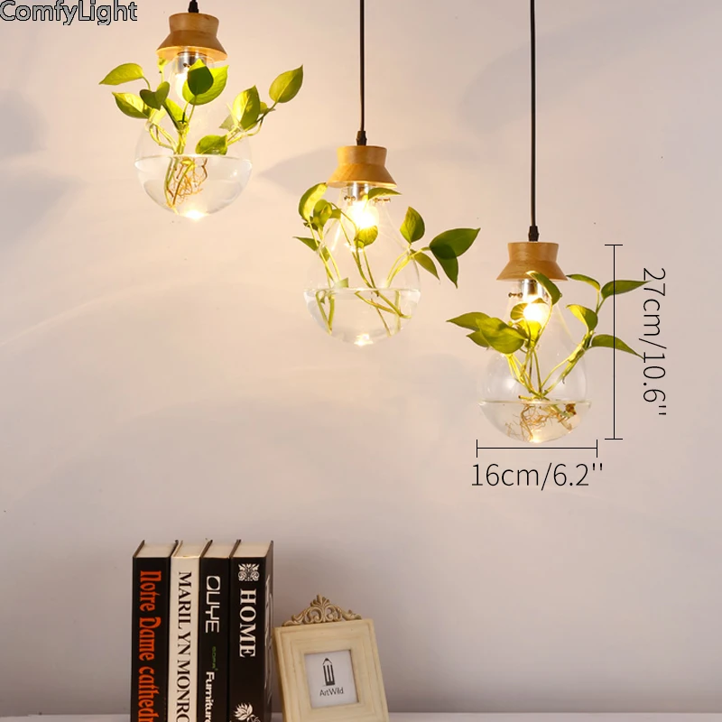 Product Name: Glas Ingemaakte Hanglamp Plant Grow Hanger Lampen Hout Retro Lustres Opknoping Armaturen Led Bloem Armatuur Suspendu Home Decor